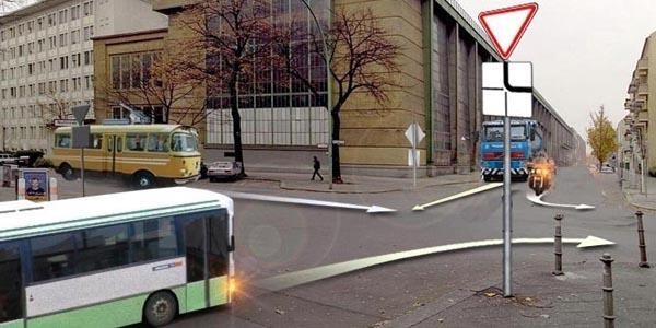 #112. Այս խաչմերուկում ծածկույթ չունեցող ճանապարհից մոտեցող բեռնատարին զիջել