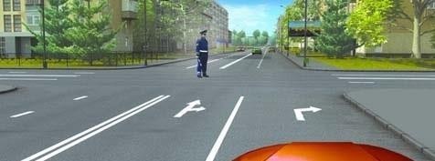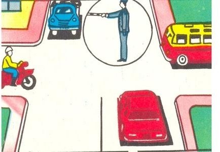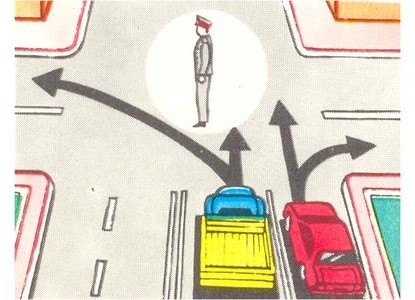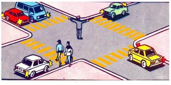 #23. Եթե կարգավորողի ձեռքերը կողմ են պարզված կամ իջեցված են, ապա նրա ձախ և աջ կողմերից ոչ ռելսագնաց տրանսպորտային միջոցների երթևեկությունը թույլատրվում է՝