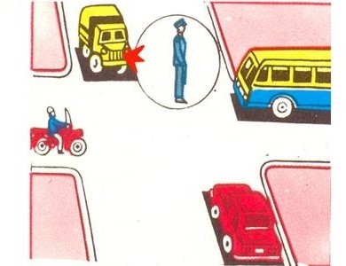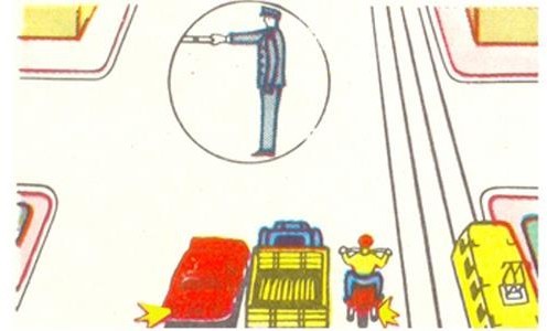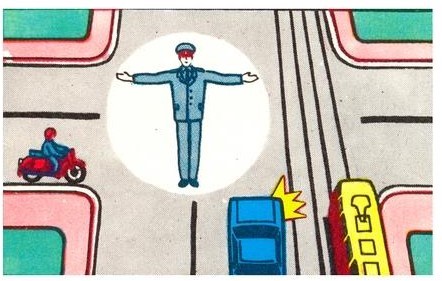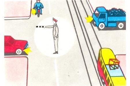 #4. Եթե կարգավորողի աջ ձեռքը պարզված է առաջ, ապա ոչ ռելսագնաց տրանսպորտային միջոցների երթևեկությունը թույլատրվում է՝