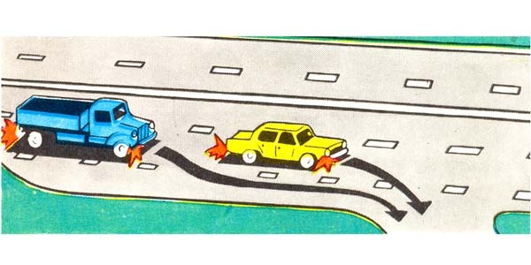 #10. Միաժամանակ վերադասավորվելիս ո՞ր տրանսպորտային միջոցի վարորդը ունի առաջնահերթ երթևեկության իրավունք: