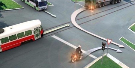 #5. Ո՞ր տրանսպորտային միջոցի վարորդն է խախտում կանոնները շրջադարձ կատարելիս` արգելակման գոտի ունեցող ճանապարհին: